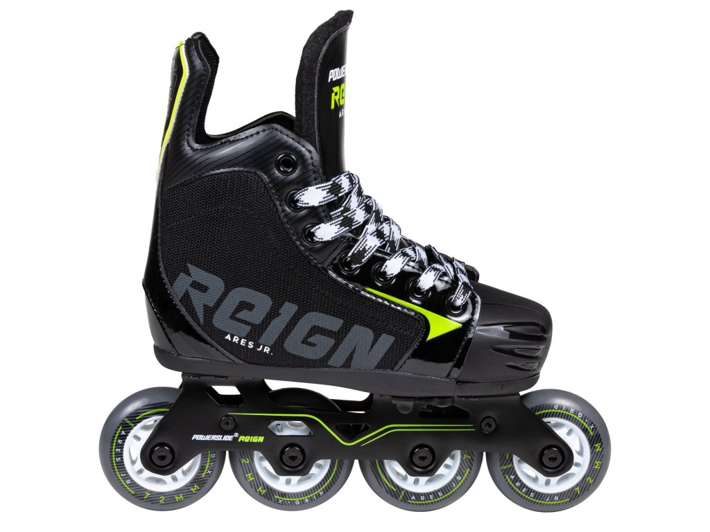 Brusle jsou osazeny lehkým a stabilním hliníkovým rámem Powerslide Ares Jr. a kolečky Powerslide Reign X-Grip. Ta zajišťují skvělou přilnavost a kontrolu nad bruslí, což je pro hokej klíčové.