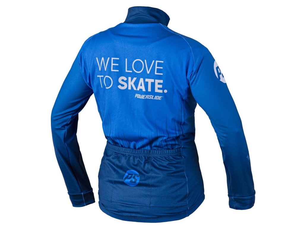 Modrá bunda na zip Powerslide Skating jacket. Tenký materiál pro minimální omezení v pohybu. Materiál: 100% polyester.