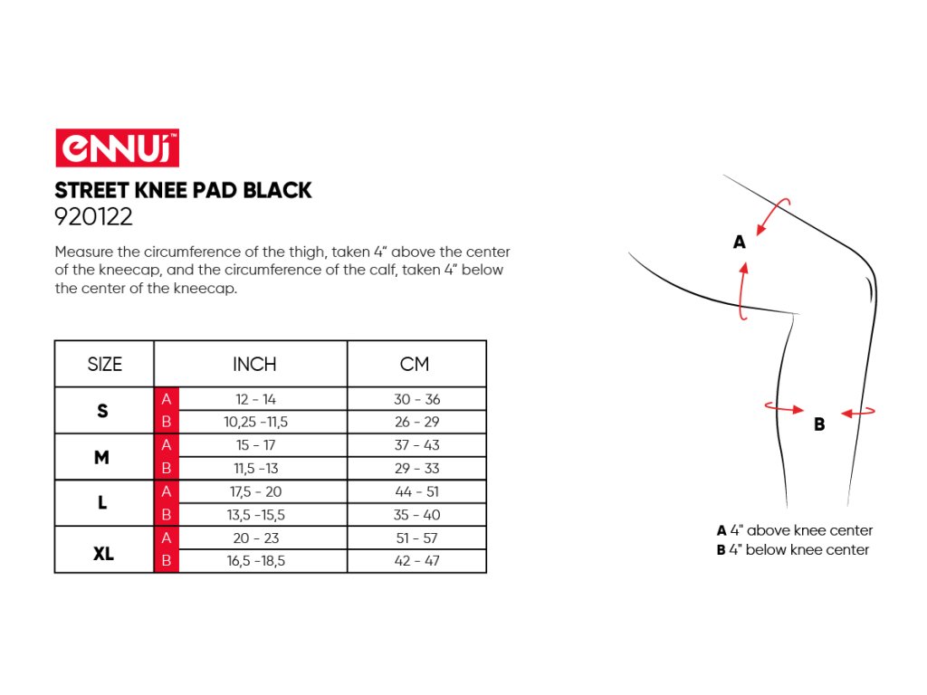 Veliké a robustní chrániče kolen Ennui Street s klasickým plastovým krytem. Zapínání pomocí pásku na suchý zip a stahovacího pásku. (Pro výběr správné velikosti použijte tabulku velikostí, která je umístěna mezi obrázky produktu.)