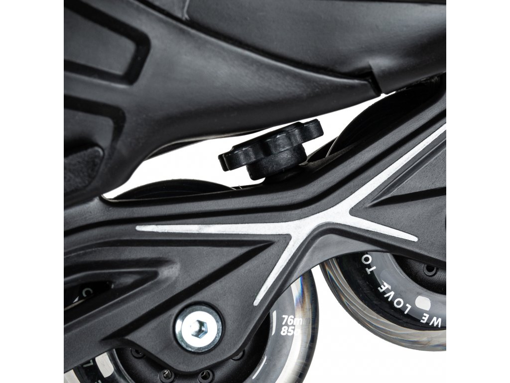 Dětské nastavitelné brusle Powerslide Khaan NXT jsou vzhledově inspirovány oblíbenými freeskate bruslemi Next. Kromě klasické patní brzdy brusle umožňují regulovat otáčení prostředních koleček (LTD). To lze jednoduše ručně nastavit pomocí matice mezi rámem a botou a ulehčit tak dětem první bruslařské krůčky. Kolečka jsou zde použita Powerslide Hurricane s tvrdostí 85a a průměrem v rozmezí 64-76mm dle velikosti brusle. Ložiska Abec 7. Celkově se jedná se o kvalitní a odolné fitness/freeskate brusle pro kluky i holky. Polypropylenový rám je dostatečně pevný a lépe pohlcuje vibrace vyvolané jízdou. Botička brusle je anatomicky tvarovaná a poskytuje vysoký komfort. Jednoduchý systém nastavení velikosti brusle v rozmezí čtyř velikostí a to pomocí vysunování její špičky. Plastový skelet zajišťuje spolehlivou oporu, zabraňuje propadání kotníků a ztrátám energie při bruslení. Navíc chrání brusli proti poškození. Samozřejmostí zůstává osvědčený způsob utažení bruslí pomocí tkaniček a dvou přezek. Dopřejte svým nejmenším skutečné pohodlí a radost z bruslení díky bruslím Powerslide Khaan Junior NXT. (Pro výběr správné velikosti použijte tabulku velikostí, která je umístěna mezi obrázky produktu.)
