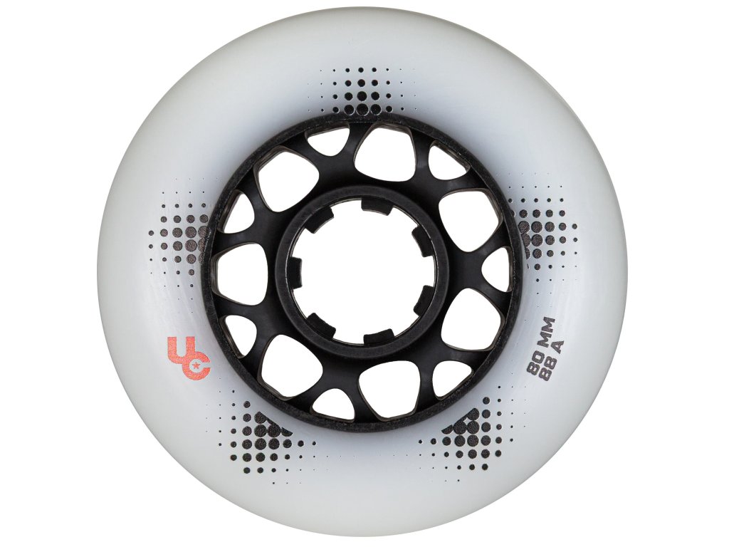 Balení obsahuje 4 kolečka – vhodná jako upgrade pro většinu inline bruslí s rámem pro 80mm kola. K dispozici jsou i další průměry: 84, 90, 100, 110 a 125 mm.