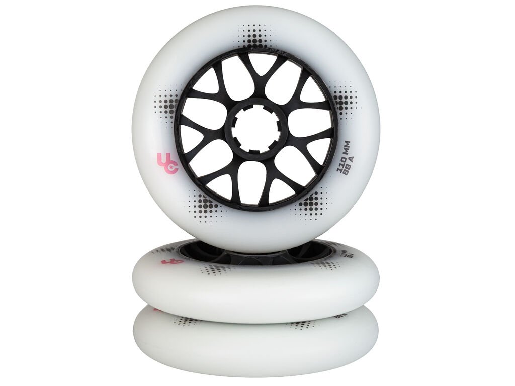 Balení obsahuje 3 kolečka – vhodná jako upgrade pro většinu inline bruslí s rámem pro 110mm kola. K dispozici jsou i další průměry: 80, 84, 90, 100 a 125 mm.