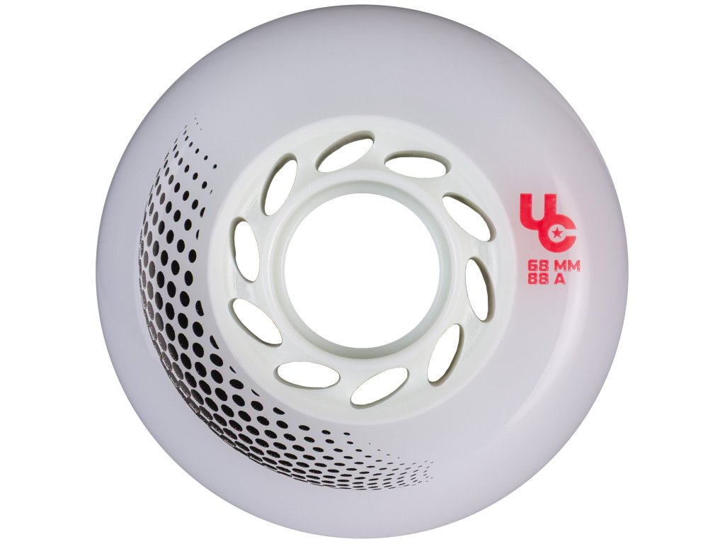 UHR polyuretan (Ultra High Rebound) zajišťuje reaktivní jízdu s vysokou návratností energie, díky čemuž kolečka dobře drží rychlost a zvládají nerovnosti i dopady. Tvrdost 88A umožňuje precizní kontrolu hran a skluzů, ale zároveň poskytuje dostatečnou přilnavost při rychlých obloucích a přechodech mezi různými povrchy.