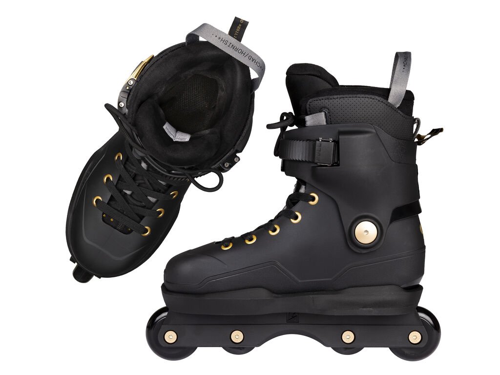 Nový Pro Model Chad Hornish je víc než jen brusle – je to splněný sen po 25 letech. Stylové černé provedení se zlatými detaily dokonale ladí s osobním stylem Chada Hornishe – černé tričko, zlatý řetízek a čistá agresivní energie na každém kroku.