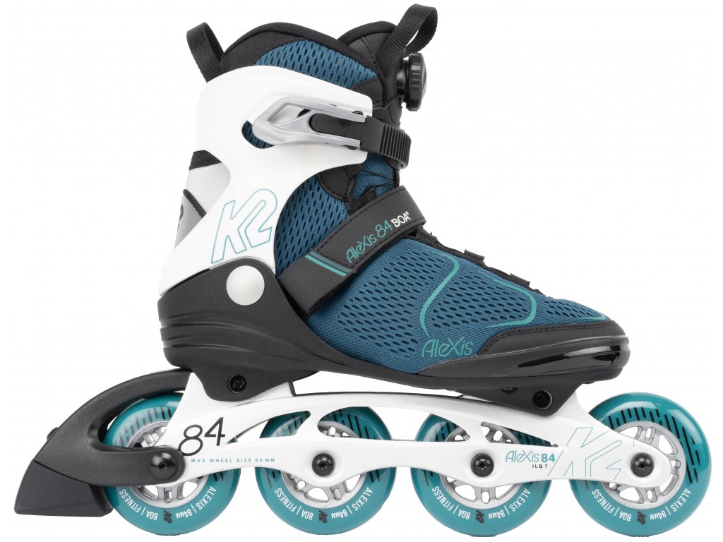 Dámské kolečkové brusle K2 ALEXIS 84 Boa jsou díky svým 84mm kolečkům vhodnou volbou pro začátečnice a rekreační bruslařky. Tento model je postaven na roky osvědčené botě K2 Softboot, jejíž pohodlí si oblíbilo již nepřeberné množství lidí. Samotná brusle má pevný skelet pouze v oblasti kotníku, čímž se stává velmi lehkou a prodyšnou. Pohodlné, vnitřní, anatomicky tvarované polstrování se dokáže spolehlivě přizpůsobit každému tvaru nohy. Systém zavazování je rychlý a jednoduchý, brusli stáhnete pomocí klasické přezky nad kotníkem, pásku na suchý zip přes nárt a Boa kolečka. Boa - nylonové lanko, které prochází celou bruslí a otáčením kolečka se navíjí (utahuje). Spolehlivě a rovnoměrně tak utáhne celou brusli. K povolení pak stačí zatáhnout za kolečko, lanko se poté může volně odvíjet. Osazeno kolečky K2 o průměru 84mm a tvrdosti 80a s velmi kvalitními ložisky Twincam ILQ 7, které se vyznačují svou dlouhou životností. Tato kolečka poskytují brusli nízké těžiště a tím pádem i dobrou stabilitu. Jejich nízká tvrdost navíc lépe tlumí vibrace vyvolané jízdou a zvyšuje jejich přilnavost. Hliníkový rám je k brusli pevně přinýtován. Brusle mají klasickou K2 brzdu s výměnným gumovým špalkem. Hledáte-li pohodlné brusle pro rekreační bruslení, pak jsou pro vás K2 ALEXIS 84 Boa ideální volbou. (Pro výběr správné velikosti použijte tabulku velikostí, která je umístěna mezi obrázky produktu.)
