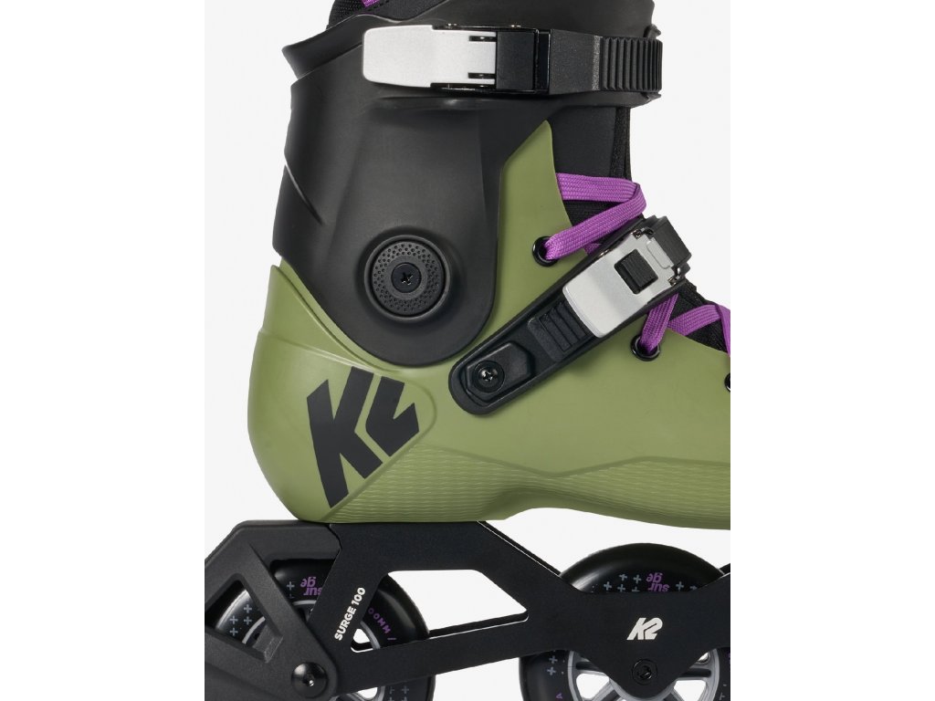 Surge 100 jsou první brusle od K2 s pevným skeletem (hard boots), nicméně při vývoji této pevné konstrukce výrobce čerpal z dlouholetých zkušeností a technologií používaných u lyžařských bot. Bota brusle je tvořena kompozitem na bázi polypropylenu a