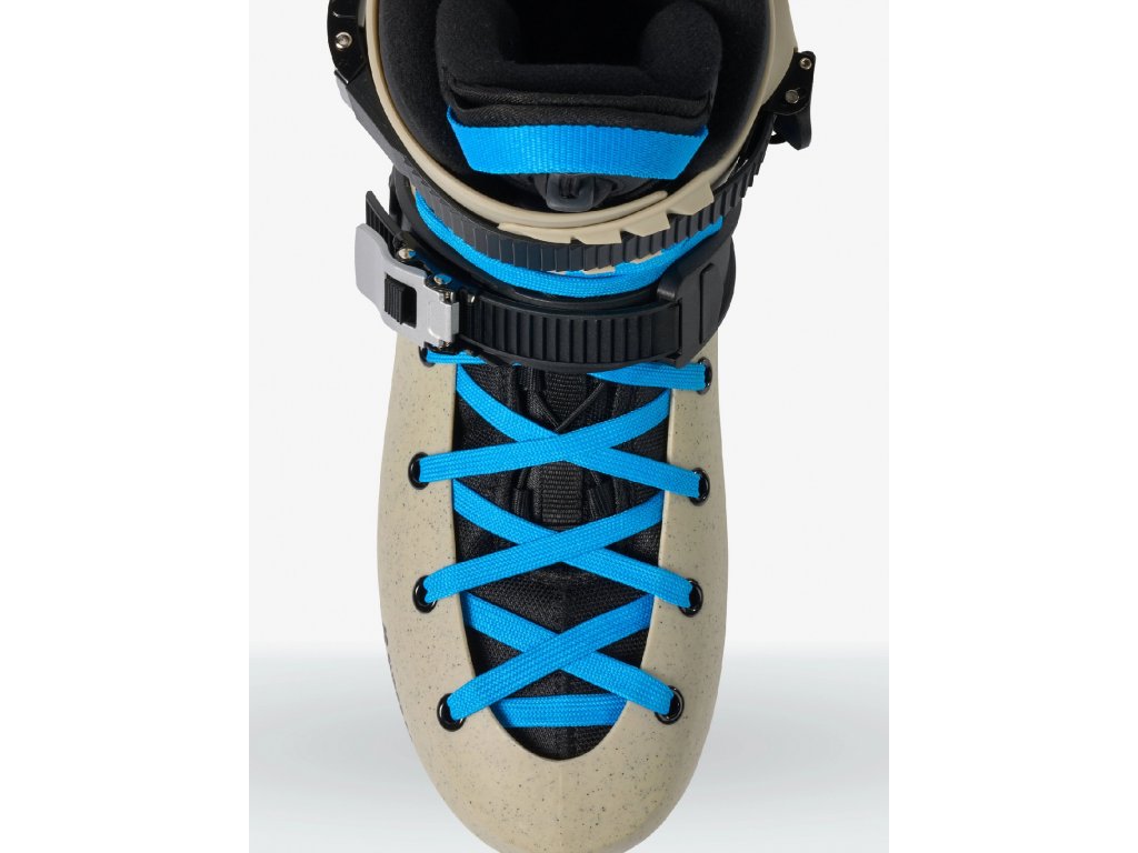 Zapínání na přezky - horní přezka se postará o zpevnění kotníku, spodní páková přezka zabraňuje zvedání paty, čímž zlepšuje usazení nohy v brusli. Obě přezky jsou hliníkové, čímž je zvýšena jejich odolnost.
