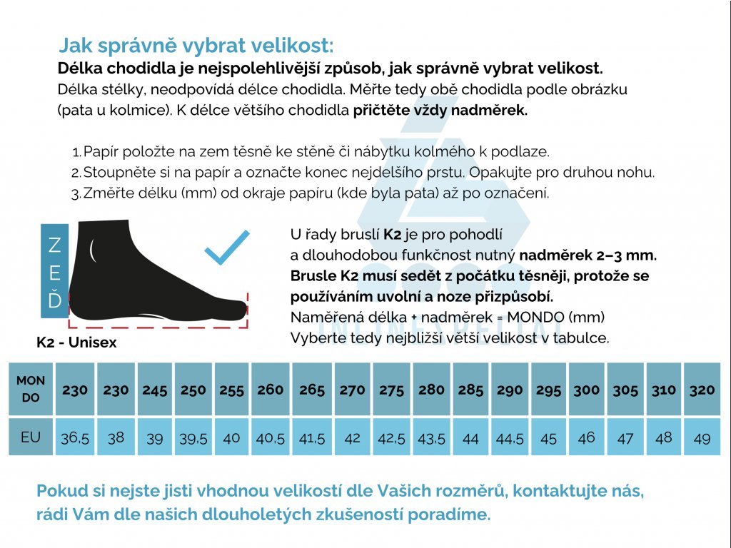 Pohodlné, vnitřní, anatomicky tvarované polstrování se dokáže spolehlivě přizpůsobit každému tvaru nohy. Systém zavazování je rychlý a jednoduchý – brusli stáhnete pomocí klasické přezky nad kotníkem, pásku na suchý zip přes nárt a jedinečného K2 Speed Lace.