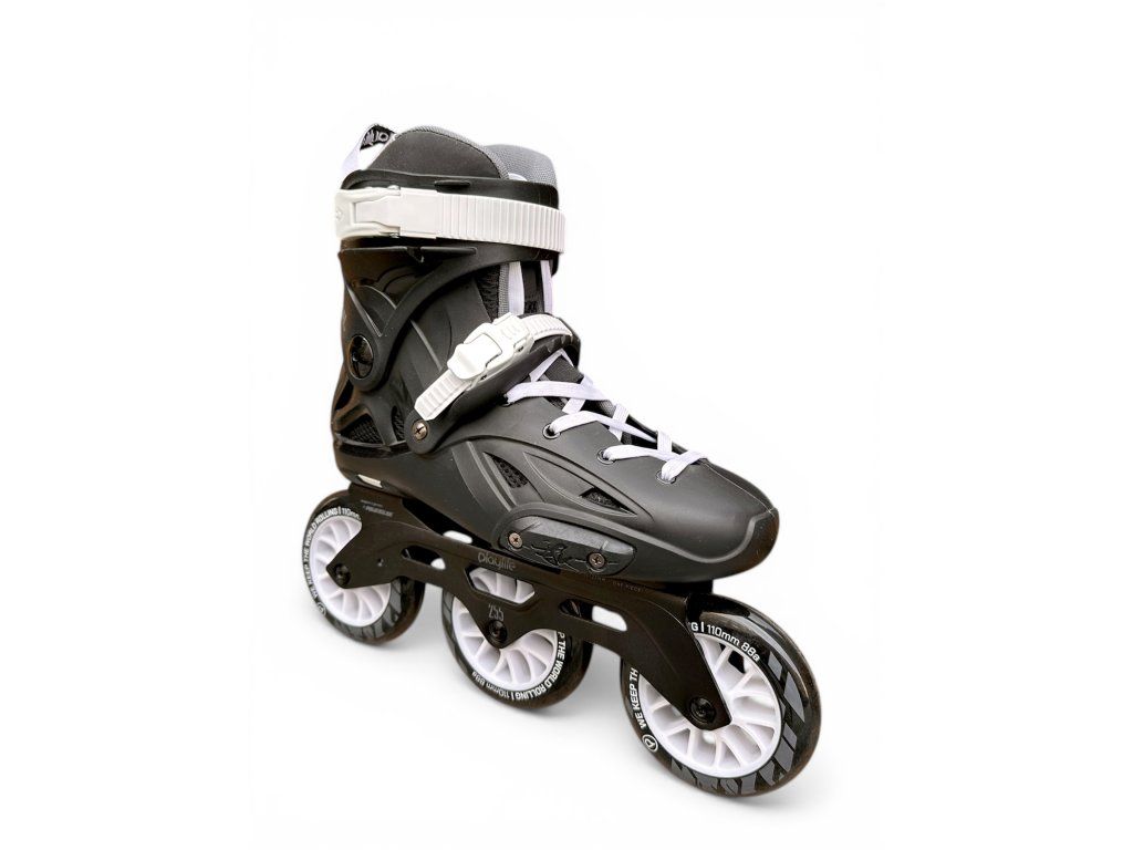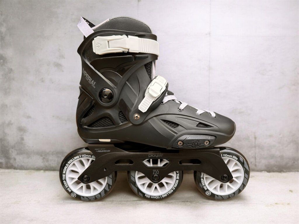 Spolehlivé kolečkové brusle Playlife Imperial v černo-bílém provedení zvládnou jízdu městem i na stezce. Jsou osazeny spolehlivým hliníkovým rámem řady Unity o délce 255 mm, který pojme kolečka až 125 mm. Tři základní kolečka Playlife o průměru 110 mm a tvrdostí 88A s ložisky WCD Freespin ABEC 9. Jedná se o střední velikost koleček z kategorie triskate. Brusle si tak zachovávají nízké těžiště i skvělou ovladatelnost. Navíc si hravě poradí i s horším povrchem.