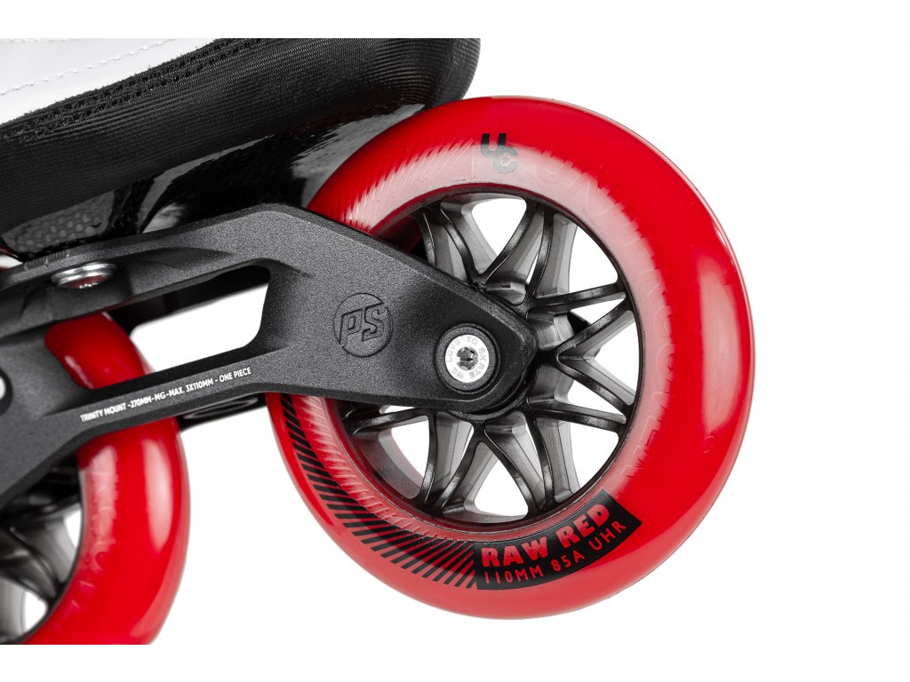 Brusle jsou osazeny extra lehkým a pevným magnesiovým rámem o délce 270mm. Třemi skvělými kolečky Undercover Raw o průměru 110mm a tvrdosti 85A s ložisky WCD Freespin ABEC 9. Jedná se o střední velikost koleček z kategorie triskate. Brusle si tak zachovávají stále nízké těžiště. Prodloužený rám lépe vede nohu při bruslení, dovoluje využít větší sílu při odrazu a hodí se tedy na jízdu na dlouhých stezkách či oválech.