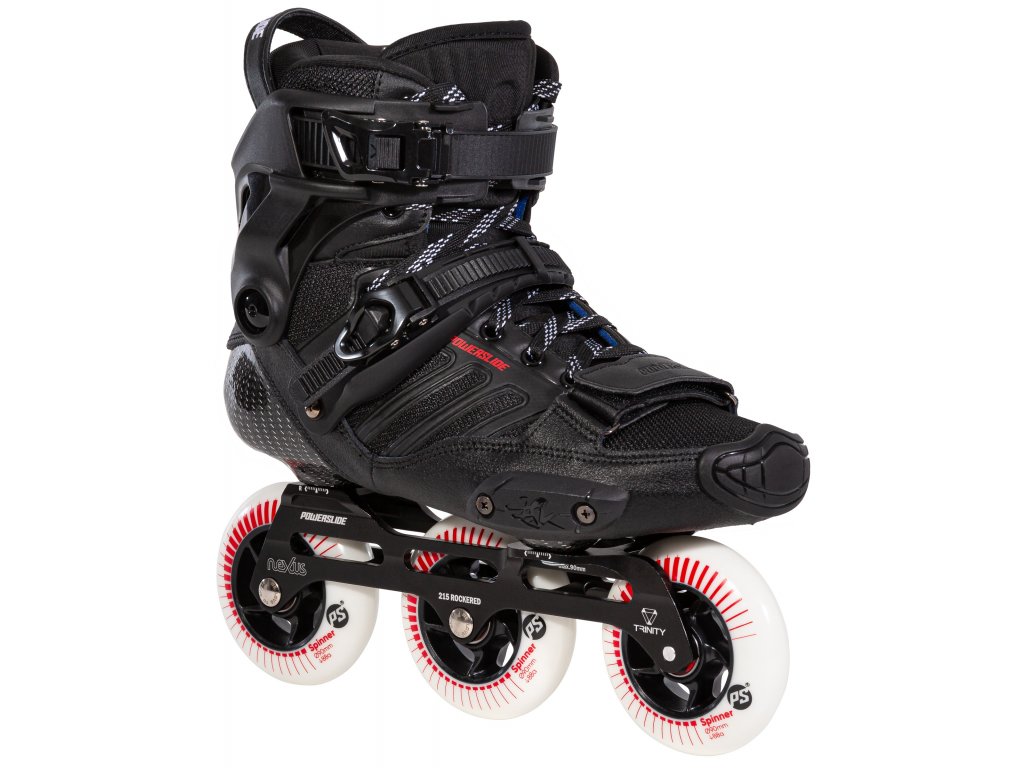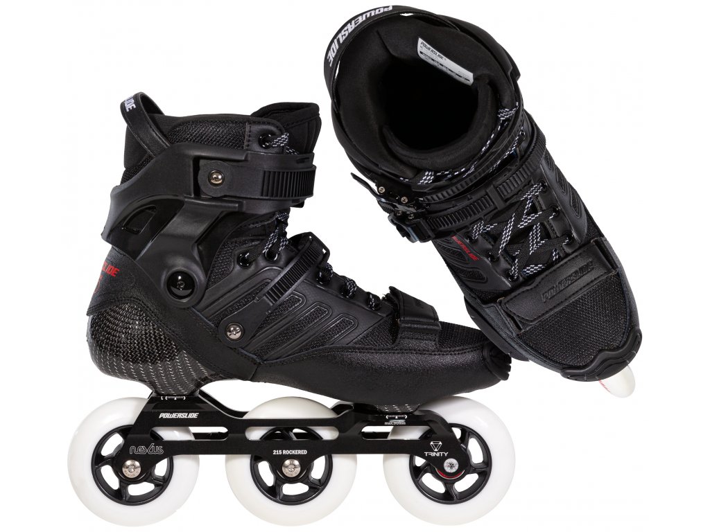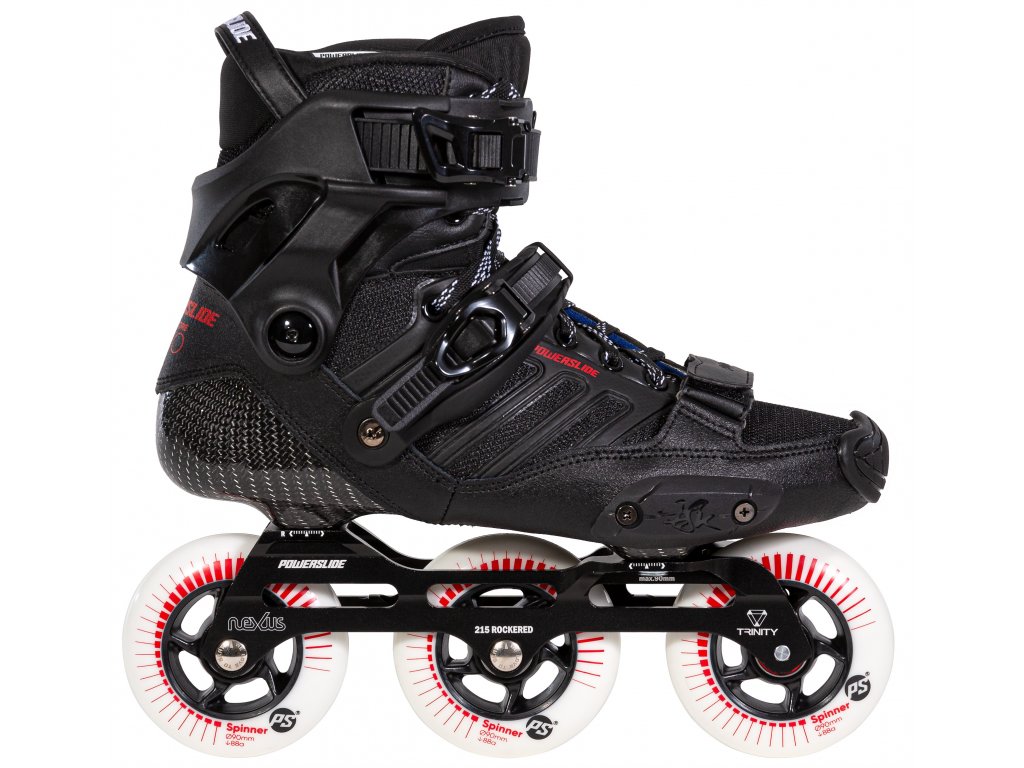 Skvělé kolečkové brusle Powerslide HC EVO Pro Trinity 2021 jsou určeny pro nejnáročnější freeskate jezdce. Lehoučká karbonová bota je anatomicky tvarovaná a poskytuje vysokou oporu při zachování své minimální hmotnosti. Karbonové brusle nejvíce vynikají svým skvělým přenosem energie i výborným "cítěním" jízdy a všeho, co se pod botou děje. To vše díky vysoké pevnosti a tuhosti karbonové skořepiny. Zabudovaná vnitřní botička je pevnou součástí brusle a dodává bruslím schopnost perfektní odezvy na jakýkoliv provedený pohyb. Díky kvalitní paměťové pěně jsou brusle pohodlné již od prvního obutí. Pěna navíc reaguje na zahřívání těla při sportu a v průběhu používání se dotvarovává přímo na nohu majitele. Tvarování celé brusle je možné provést tepelně. Maximální možná kvalita použitých materiálů zaručuje vysokou odolnost brusle. Ráčnové přezky v kombinaci s plochými tkaničkami a páskem na suchý zip perfektně fixují nohu uvnitř brusle. Výměnný slider na boku chrání brusli proti poškození při pádu. Trinity rám je uchycen místo dvěma klasickými, rovnou třemi šrouby (jeden pod patou, dva pod špičkou). Toto revoluční řešení umožňuje maximální přiblížení koleček k botě, snížení těžiště a zvýšení stability. Navíc tento systém spolehlivěji tlumí vibrace vyvolané jízdou, lépe přenáší sílu odrazu a poskytuje více kontroly nad jízdou samotnou. Uchycení umožňuje i částečný posun rámu do všech 4 stran a tím možné doladění přímo dle svých potřeb. Osy kol se z jedné strany šroubují přímo do těla rámu. Servis bruslí je tak extrémně jednoduchý, rychlý a stačí k němu jeden klíč. Použitý hliníkový rám Powerslide Nexus umožňuje u prostřední a zadní osy koleček tzv. rockering (vysunutí koleček o cca 3mm více z rámu a vytvoření odlišných jízdních vlastností brusle). Osazeno spolehlivými kolečky Spinner 90/88a a ložisky Wicked Abec 9. Brusle Powerslide HC EVO Pro Trinity jsou svými jedinečnými vlastnostmi a kvalitou skutečnou špičkou pro freeskate i slalom ježdění. (Pro výběr správné velikosti použijte tabulku velikostí, která je umístěna mezi obrázky produktu.)