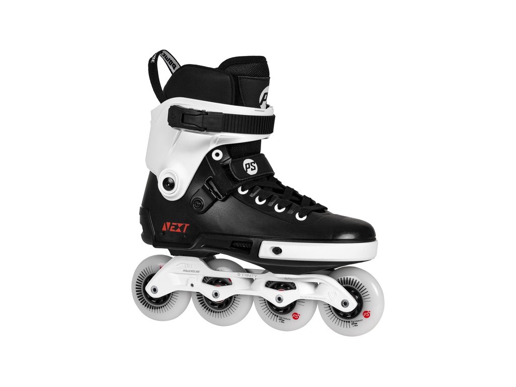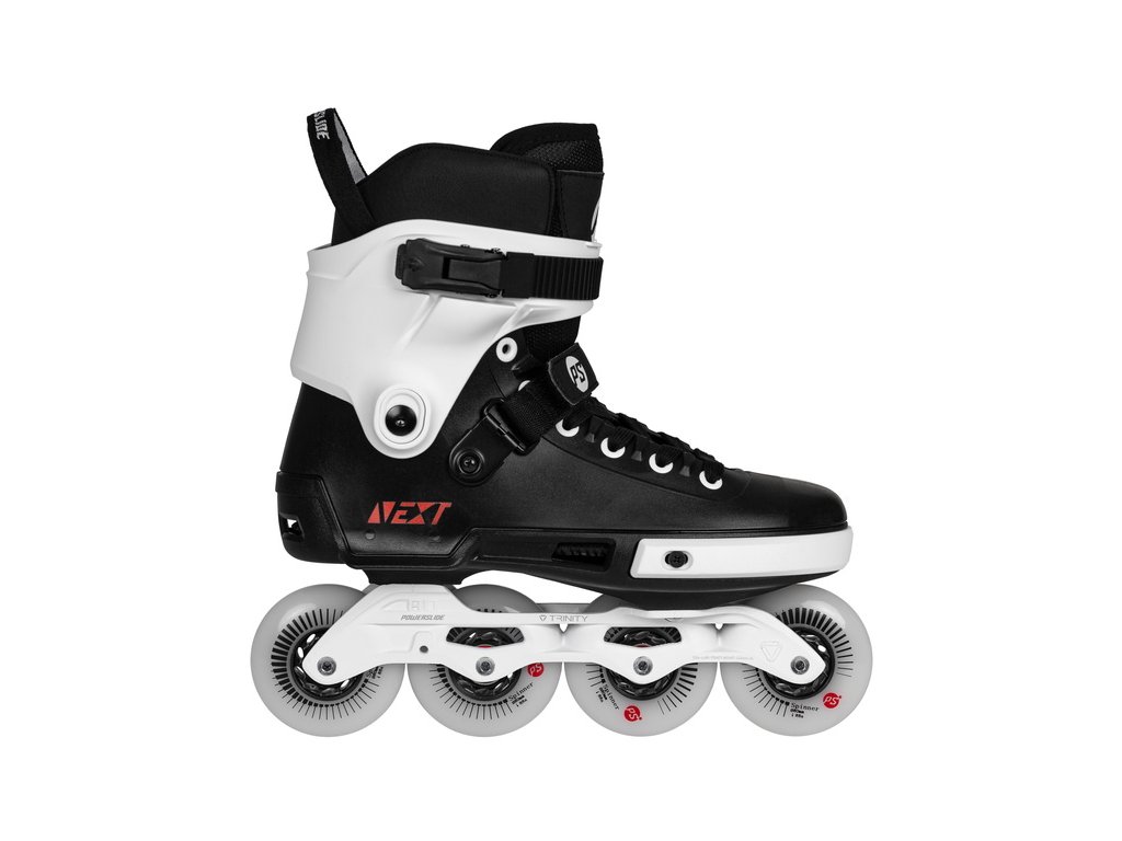 Čtyřkolečkové brusle Powerslide Next Core 80 Trinity pro rok 2024. Tento nový černobílý model představuje pokračování celosvětově oblíbené řady Next, kterou si uživatelé oblíbili nejen pro své technické kvality, ale i vysokou všestrannost.