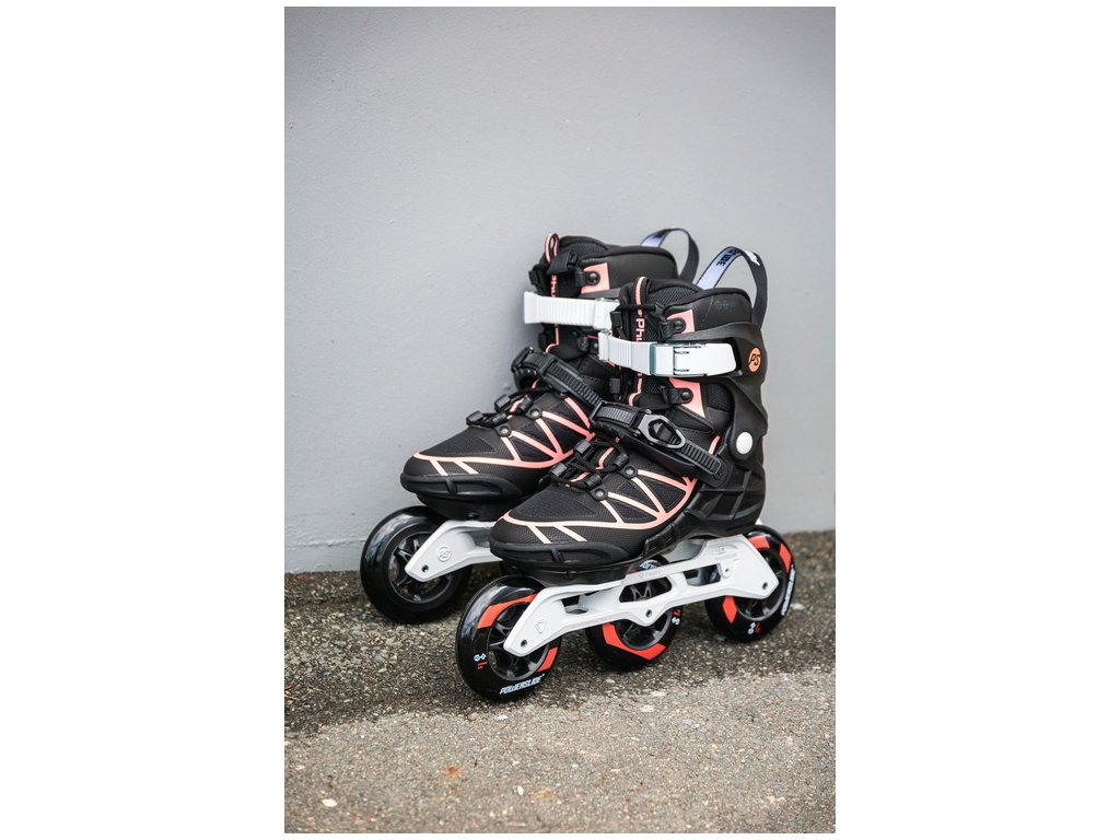 Nový dámský model Powerslide Phuzion Coral pro rok 2024 je postaven na roky osvědčené botě modelu Argon. Brusle jsou osazeny revolučním Trinity rámem s kolečky Phuzion 100 mm / 83A a ložisky WCD ABEC 9. Jedná se o nejmenší velikost koleček z kategorie triskate. Brusle si tak zachovávají nízké těžiště a úžasnou ovladatelnost. Navíc si dobře poradí i s horším povrchem. Moderní brusle Powerslide Phuzion Argon Coral se třemi 100mm kolečky je stabilní, lehce se ovládá a lépe překonává nerovnosti. Jedná se tak o model vhodný pro začátečníky i pokročilé.