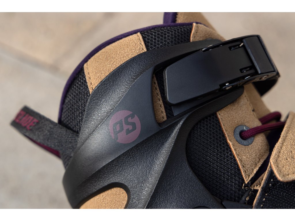 Osy kol se šroubují přímo do těla rámu. Servis bruslí je tak extrémně jednoduchý, rychlý a stačí k němu jeden klíč. Posuvný špalek brzdy umožňuje nastavení libovolného úhlu k brzdění a zároveň vydrží delší dobu než u jiných značek bruslí díky možnému pohybu.