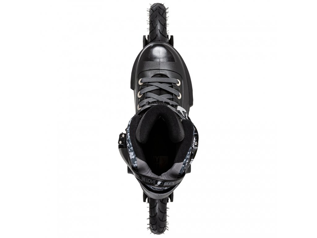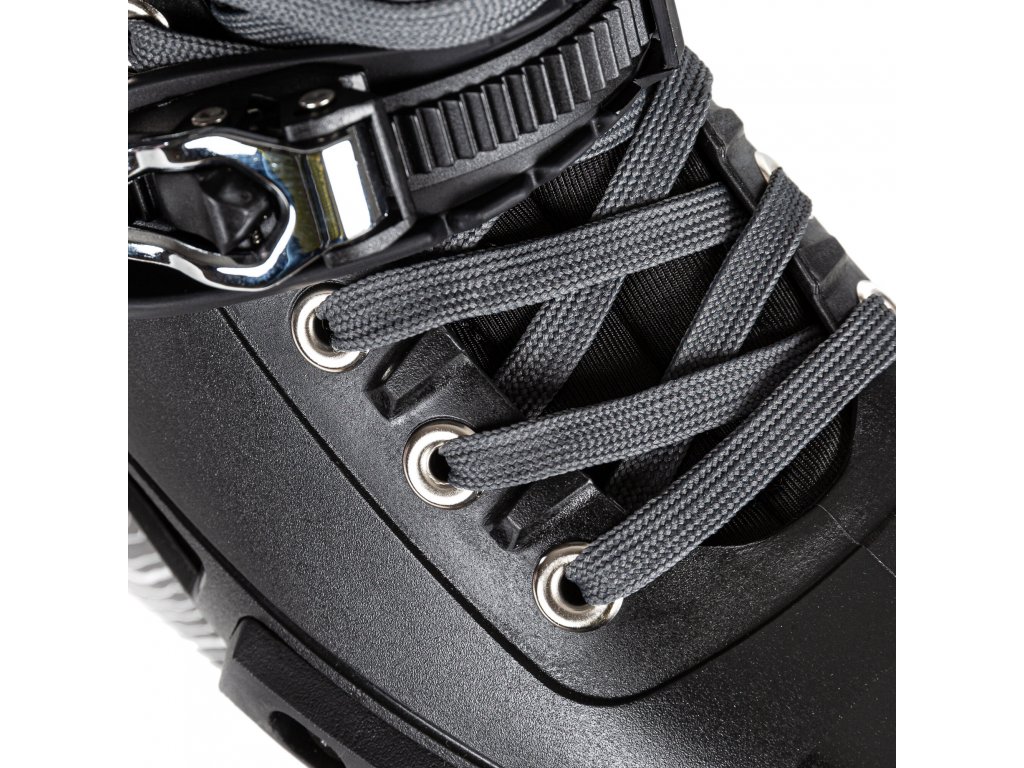 Páková přezka přes nárt a klasická nad kotníkem dotváří 100 % spolehlivý systém zapínání bruslí. Trinity rám je uchycen místo dvěma klasickými, rovnou třemi šrouby (jeden pod patou, dva pod špičkou). Toto revoluční řešení umožňuje maximální přiblížení koleček k botě, snížení těžiště a zvýšení stability. Navíc tento systém spolehlivěji tlumí vibrace vyvolané jízdou, lépe přenáší sílu odrazu a poskytuje více kontroly nad jízdou samotnou. Uchycení umožňuje i částečný posun rámu do všech 4 stran a tím možné doladění přímo dle svých potřeb.