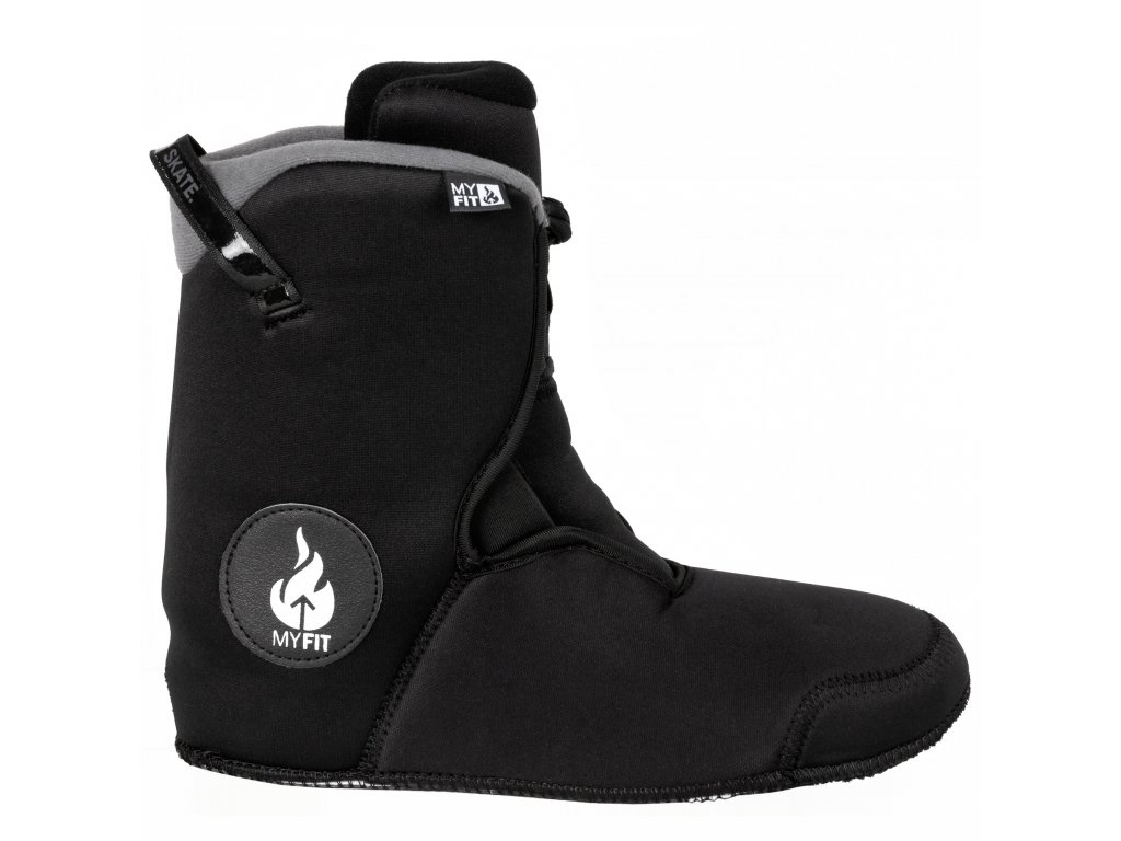 - Anatomicky tvarovaná vnitřní botička (liner) Myfit je pohodlná již od prvního obutí. Pod patou umístěný shock absorber (gumová stélka) pomáhá jezdci tlumit každý dopad.