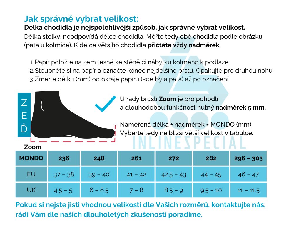 Správný postup výběru velikosti bruslí naleznete v galerii (poslední obrázek).