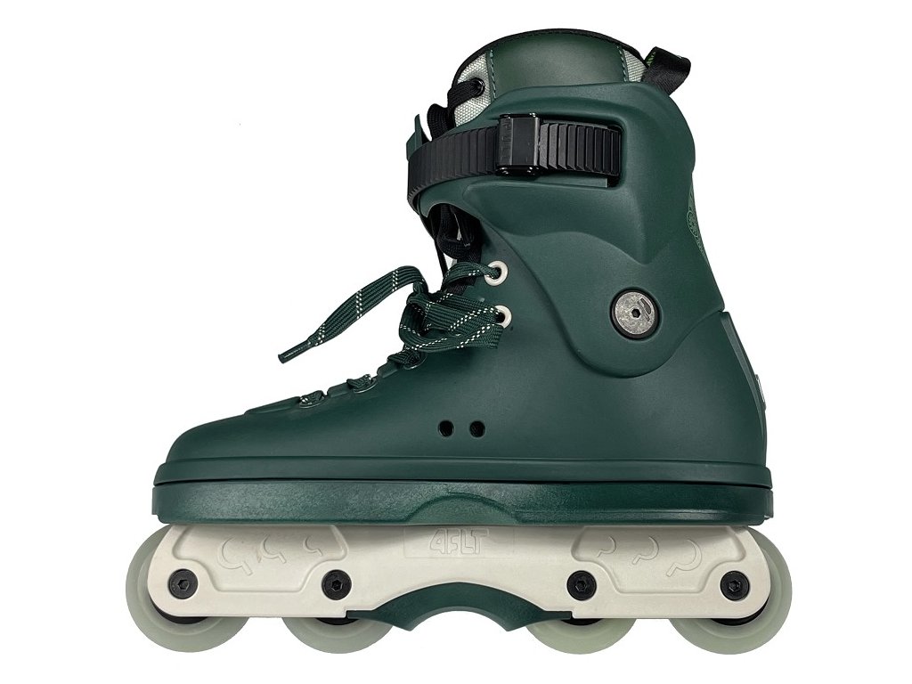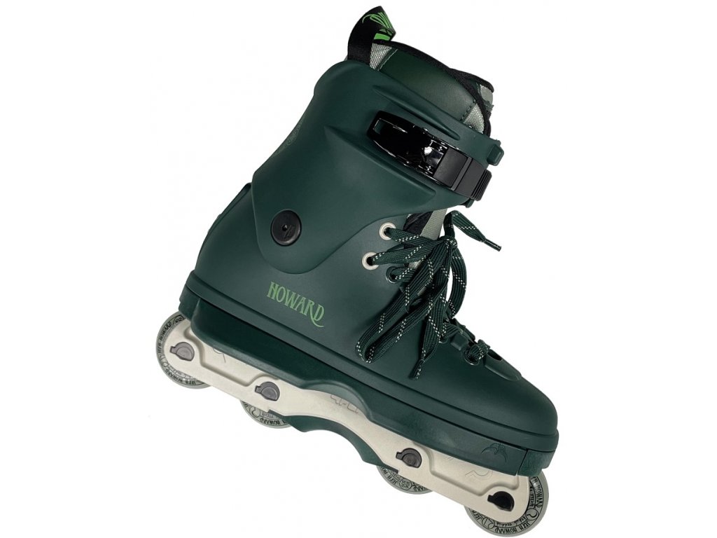 Zelené aggressive brusle Razors Shift Jeph Howard jsou druhým promodelem světového jezdce z Minnesoty. Model přináší vylepšení v podobě extra očko na tkaničky pro lepší fixaci paty v brusli, výborný liner Reign V3, celokovovou přezku, ploché voskované tkaničky a ve tmě svítící kolečka. Osazeno GC FLT 4 framy s 4x60mm GC kolečky o tvrdosti 90a a ložisky Abec 9. Pro přichycení baseplatu byly přidány dva malé šroubky na jeho vnitřní straně, ty mají bruslím dodat vyšší tuhost, ale jejich použití není nutností. Nově mají šroubky také hvězdičkovou hlavičku pro menší náchylnost ke stržení. Modely Shift vznikly na základě kombinace dvou nejpopulárnějších Razors modelů. Nové Shift mají jednoduchou a štíhlejší botu jako modely Cult a skvělé těžiště jako brusle řady SL. Největší novinkou, kterou Shift přináší, je systém výměny framů a soulplatů. Poprvé v historii je řešen pomocí dvou zobáčků. Ty spolehlivě drží během bruslení a zároveň umožňují výměnu framu za pouhých 15 sekund. Tato nová bota byla vyvíjena i testována 3 roky a jak je známo, značka Razors vždy přinese na trh revoluční a kvalitní produkt. Neváhejte se o tom přesvědčit na vlastní kůži.