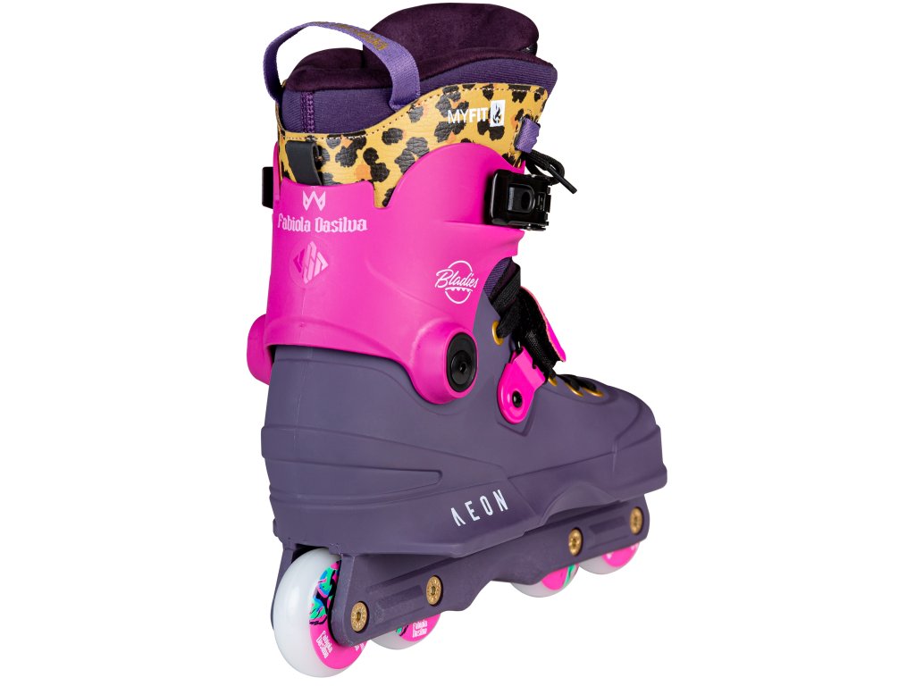 Aggressive kolečkové brusle USD Aeon 60 Fabiola Da Silva vynikají svými skvělými kolečky, prémiovým linerem, novounízkoprofilovou přezkou a barevnou kombinací. O pohodlí uvnitř se stará naprosto skvělý Prime liner od Myfit, který vyniká svým komfortem, lehkostí, výkonem a maximální kvalitou použitých materiálů. Samozřejmostí zůstává dlouhá životnost a možnost tepelného dotvarování. Nahřívání však často není potřeba. Paměťová pěna uvnitř velmi dobře reaguje na zahřívání nohy při pohybu a dotvaruje se po několika hodinách bruslení sama. Cuff je nyní možné nastavit do dvou různých výšek a regulovat tak oporu v kotníku dle vlastní potřeby. Dále již zůstává vše stejné a skvělé jak jsme u Aeonů zvyklý. Řada Aeon přišla na trh v roce 2015 a nabídla něco, co momentálně žádné jiné aggressive brusle na trhu nemají. Tím trumfem je jedinečná jednodílná konstrukce - shell, soulplate a frame je dohromady jeden díl. Brusle jsou díky tomu extrémně lehké, mají velmi nízké těžiště (vysokou stabilitu) a výborný přenos síly z každého odrazu. Skelet je tvarově velmi dobře navržen a poskytuje dostatek místa i širšímu tvaru chodidla. Soulplate tvořící jeho vnější boční část je z obou stran příjemně široký a dobře navazuje na zabudovaný frame. Zavazování je řešeno tkaničkami a přezkou. Celý tento koncept je navržen speciálně pro používání všech koleček o stejné velikosti (flat). Prostřední kolečka jsou posunuta více od středu (to je možné díky absenci UFS uchycení framu). H-blok je tak dostatečně široký a kvalitně kryje prostřední kolečka proti jejich nechtěným zásekům při grindech. Brusle je osazena prémiovými kolečky USD 60mm/88a s ložisky WCD Freespin Abec 9. Celá řada Aeon je již roky prověřená a těší se nejen u nás, ale i ve světě velké oblibě. Výběrem tohoto modelu tak jistě nešlápneš vedle. (Pro výběr správné velikosti použijte tabulku velikostí, která je umístěna mezi obrázky produktu.)