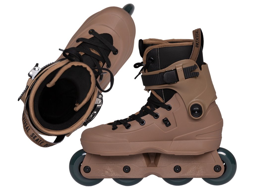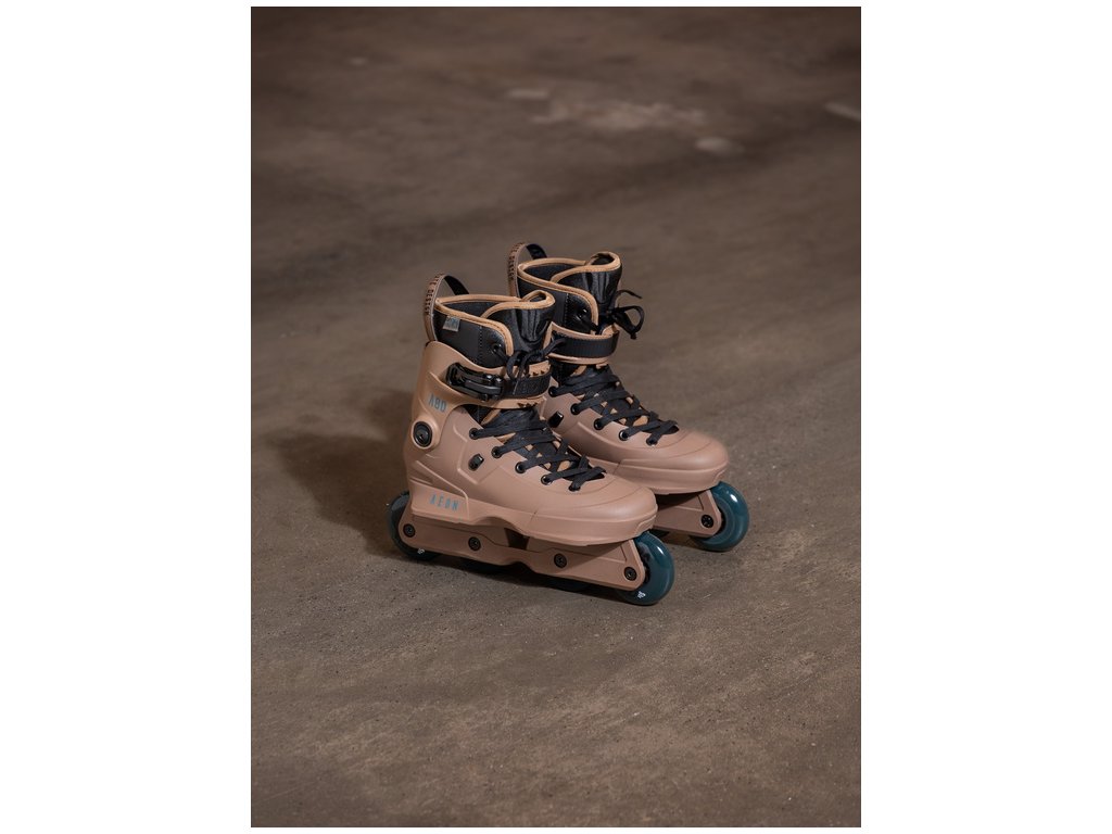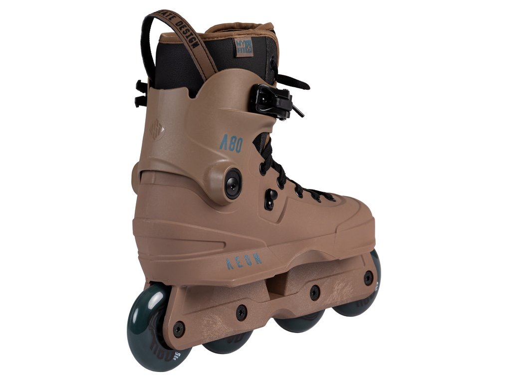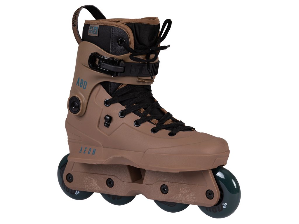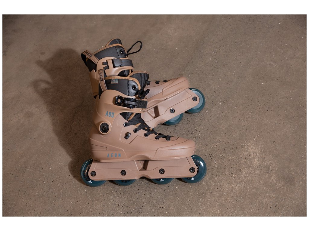 Kolečkové brusle USD Aeon 80 nyní v hnědé barvě a s Kizer Memory přezkou. Tento model spojuje svět aggressive a freeskate bruslení. Řada Aeon přišla na trh v roce 2015 a nabídla něco, co momentálně žádné jiné aggressive brusle na trhu nemají. Tím trumfem je jedinečná jednodílná konstrukce - shell, soulplate a frame je dohromady jeden díl. Brusle jsou díky tomu extrémně lehké, mají velmi nízké těžiště, tedy vysokou stabilitu a výborný přenos síly z každého odrazu. Skelet je tvarově velmi dobře navržen a poskytuje dostatek místa i širšímu tvaru chodidla.
