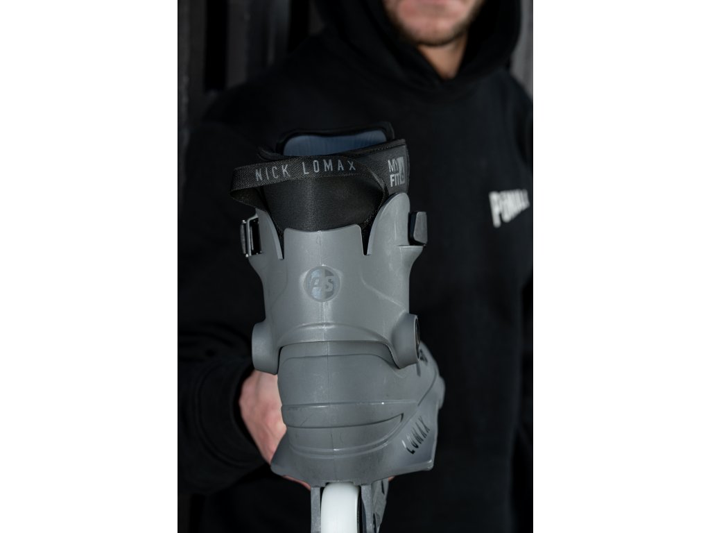 Nové aggressive brusle USD Nick Lomax Pro Aeon 60. Tentokrát v šedé barvě s novým cuffem a silnějším antishockem pod patou. Řada Aeon přišla na trh v roce 2015 a nabídla něco, co momentálně žádné jiné aggressive brusle na trhu nemají. Tím trumfem je jedinečná jednodílná konstrukce - shell, soulplate a frame je dohromady jeden díl. Brusle jsou díky tomu extrémně lehké, mají velmi nízké těžiště (vysokou stabilitu) a výborný přenos síly z každého odrazu. Skelet je tvarově velmi dobře navržen a poskytuje dostatek místa i širšímu tvaru chodidla. Soulplate tvořící jeho vnější boční část je z obou stran příjemně široký a dobře navazuje na zabudovaný frame. O pohodlí uvnitř se stará špičkový liner od Myfit. Zde je to model 2nd Skin, který má nejtenčí tloušťku výstelky. Linery Myfit jsou vyráběny z prvotřídních materiálů. Kromě pohodlí se vyznačují také dlouhou životností a možností tepelného dotvarování. Nahřívání však často není potřeba. Paměťová pěna uvnitř velmi dobře reaguje na zahřívání nohy při pohybu a dotvaruje se po několika hodinách bruslení sama. Zavazování je řešeno tkaničkami a klasickou přezkou. Celý tento koncept je navržen speciálně pro používání všech koleček o stejné velikosti (flat). Prostřední kolečka jsou posunuta více od středu (to je možné díky absenci UFS uchycení framu). H-blok je tak dostatečně široký a kvalitně kryje prostřední kolečka proti jejich nechtěným zásekům při grindech. Brusle je osazena kolečky USD Team 61mm/90a s ložisky WCD Freespin Abec 9. Celá řada Aeon je již roky prověřená a těší se nejen u nás, ale i ve světě velké oblibě. Výběrem tohoto modelu tak jistě nešlápneš vedle. (Pro výběr správné velikosti použijte tabulku velikostí, která je umístěna mezi obrázky produktu.)