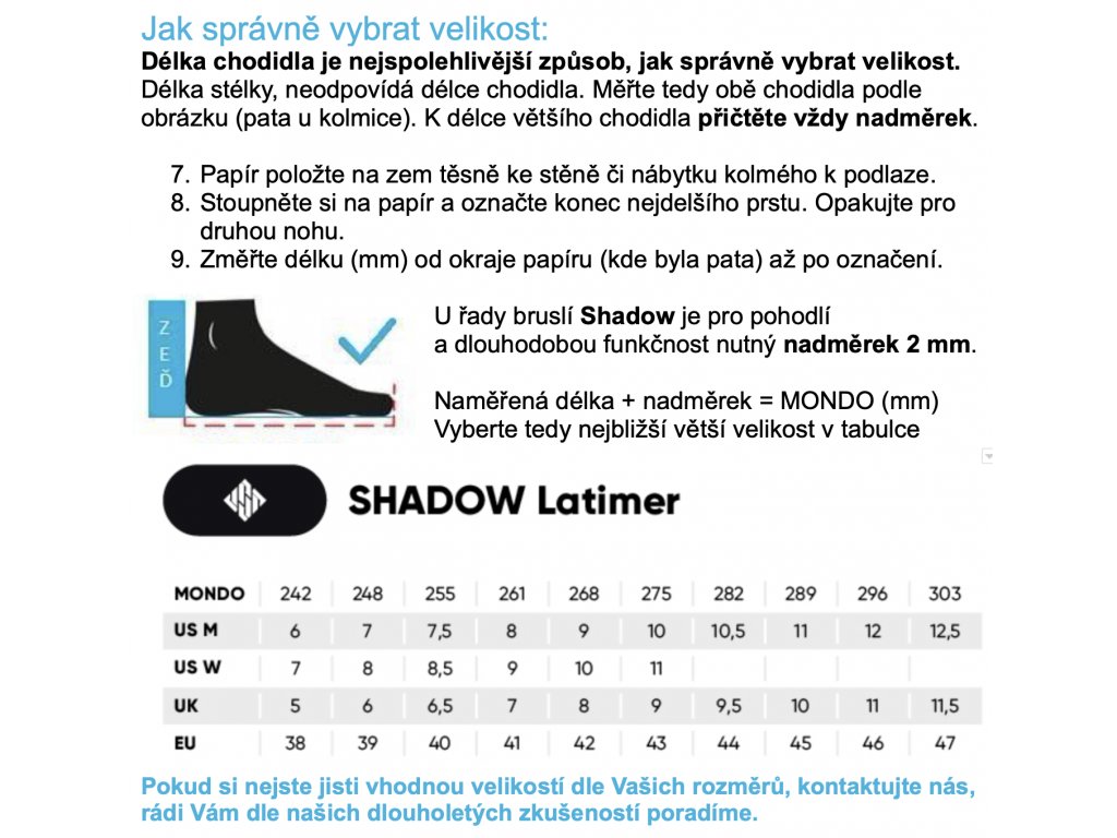 Bílé aggressive brusle USD Shadow Team jsou osazeny framem Kizer Fluid V, kolečky USD 60mm s tvrdostí 88A na krajích a 92A uprostřed pro minimalizaci možných záseků během grindování. Ložiska WCD Freespin Abec 9. Nově má cuff nyní na svém dně zalitou hliníkovou destičku. Ta mu dodává extra pevnost, pomáhá lepšímu spojení s framem a celkově zvyšuje bruslemi poskytovanou oporu. Zbylé části již zůstávají tak, jak je za poslední roky známe. Odolný a dobře tvarovaný soulplate s širokou plochou z obou stran. Strap přes špičku, nastavitelná páková přezka v úhlu 45° a nová Kizer Memory přezka nad kotníkem. Zároveň zůstal celý koncept plně kompatibilní s veškerými Xsjado díly. Shrnuto, podtrženo: Nové USD Shadow jsou vůči svým předchůdcům s atypickým jménem hned o několik kroků napřed. Pokud tedy toužíš po nevšedním vzhledu, širokých soulplatech či originálním spojení bot a bruslí, tak je model USD Shadow právě pro tebe. (Pro výběr správné velikosti použijte tabulku velikostí, která je umístěna mezi obrázky produktu.)