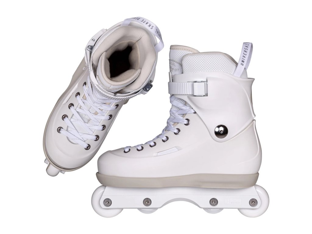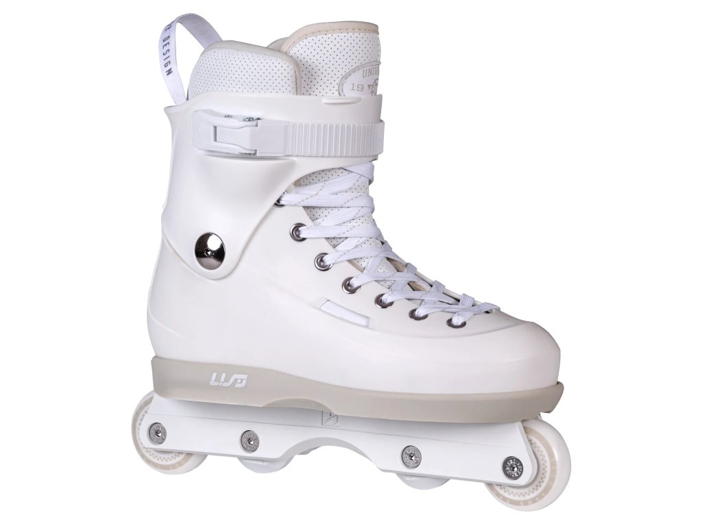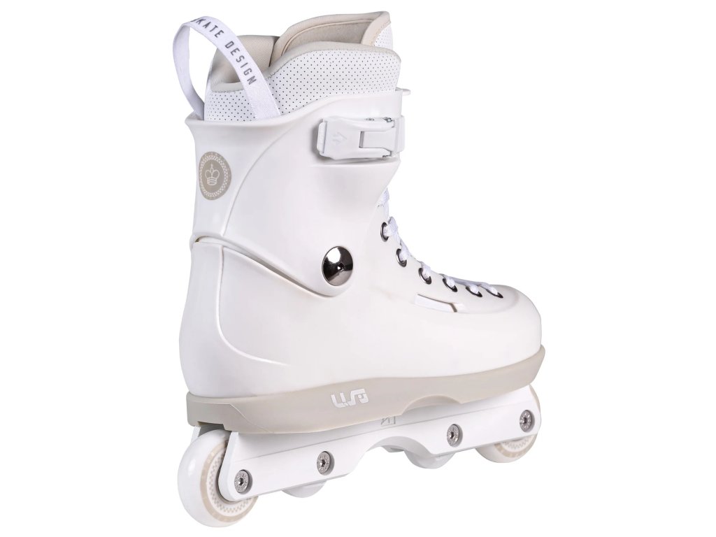 Vstup do hry s absolutní kontrolou. Nové bílé aggressive brusle USD Sway Chess White zaujmou svým čistým designem a výkonností, která osloví každého jezdce hledajícího spolehlivost, komfort i výrazný styl. Elegantní matně bílý skelet s decentními šedými detaily čerpá inspiraci z šachové strategie – přesné, taktické a důsledné.