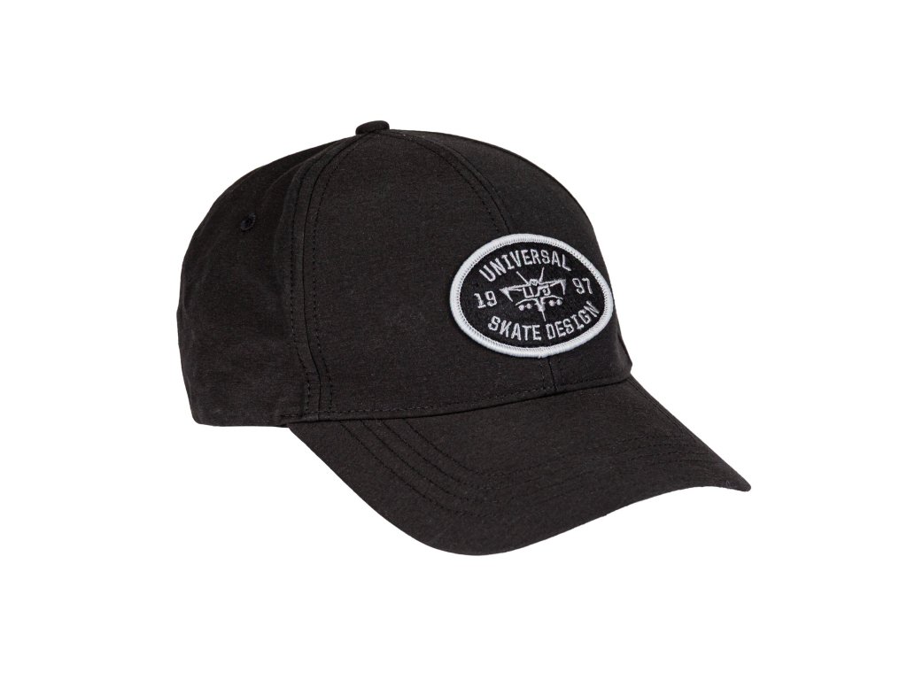 Černá šesti panelová kšiltovka USD Dad cap. Nastavitelná velikost. Materiál: 85% polyakryl, 15% vlna.