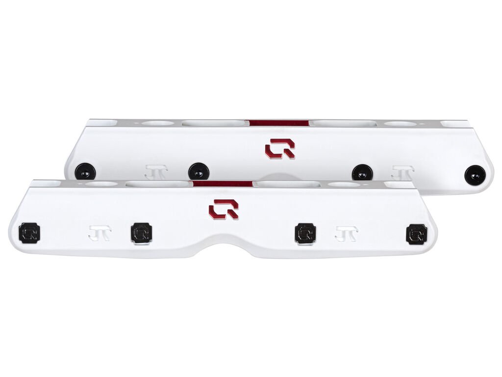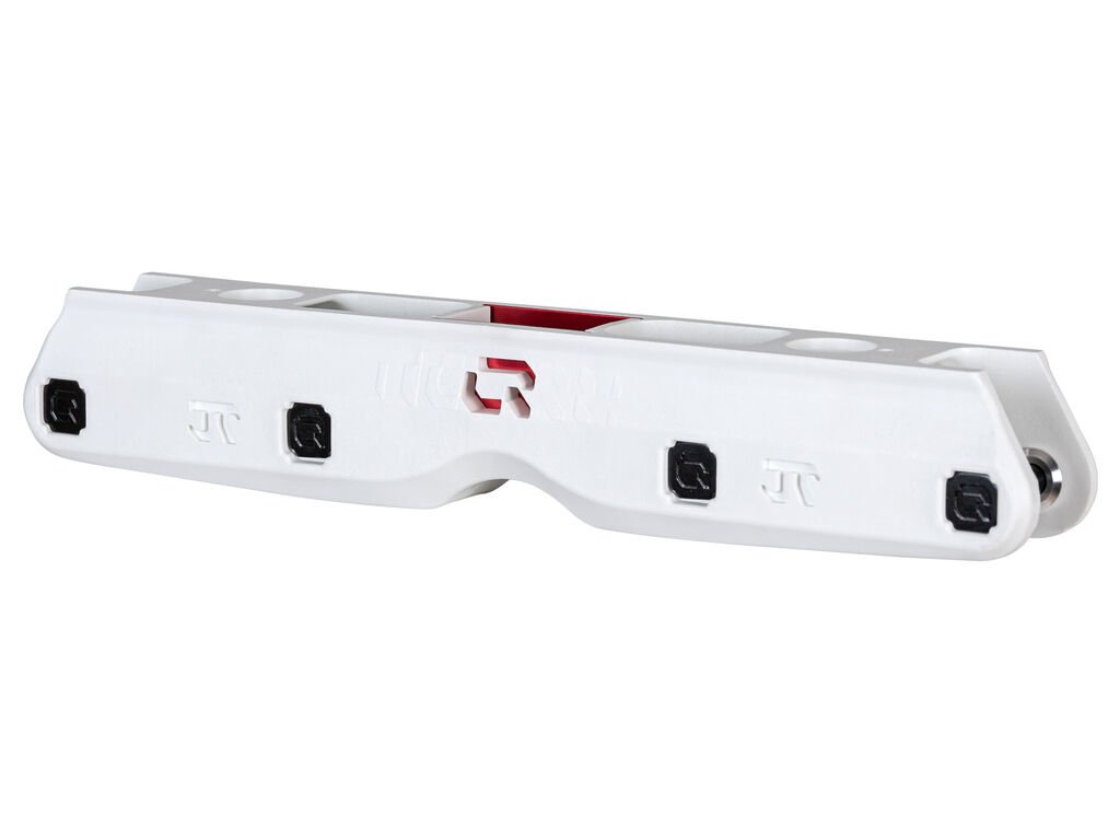Nové lehké aggressive framy Iqon AG60 v bílé barvě. Tento frame je speciálně navržen pro použití všech 8 kol stejné velikosti (flat) o průměru max. 60mm. Spodní hrany rámu jsou zkoseny pro minimalizaci šance zasekávání při grindování. Samotný groove framu výborně kryje vnitřní kolečka proti jejich zasekávání a zároveň skvěle drží v tricích. Frame je vyráběn ve třech velikostech: S: 252mm, M: 264mm, L: 278mm. Pro utahování/povolování stačí pouze jeden inbus. Prostřední kolečka je možné díky asymetrickým spacerům o 1mm vystrčit více z rámu a vytvořit tím rockering (změnit jízdní vlastnosti). Samozřejmostí jsou kovové frame spacery pro menší tření mezi ložisky a samotným framem. Barvu "Q" uprostřed framu je možné měnit přiloženými destičkami na zlatou, stříbrnou a červenou. V balení 1 pár včetně všech šroubů a spacerů.