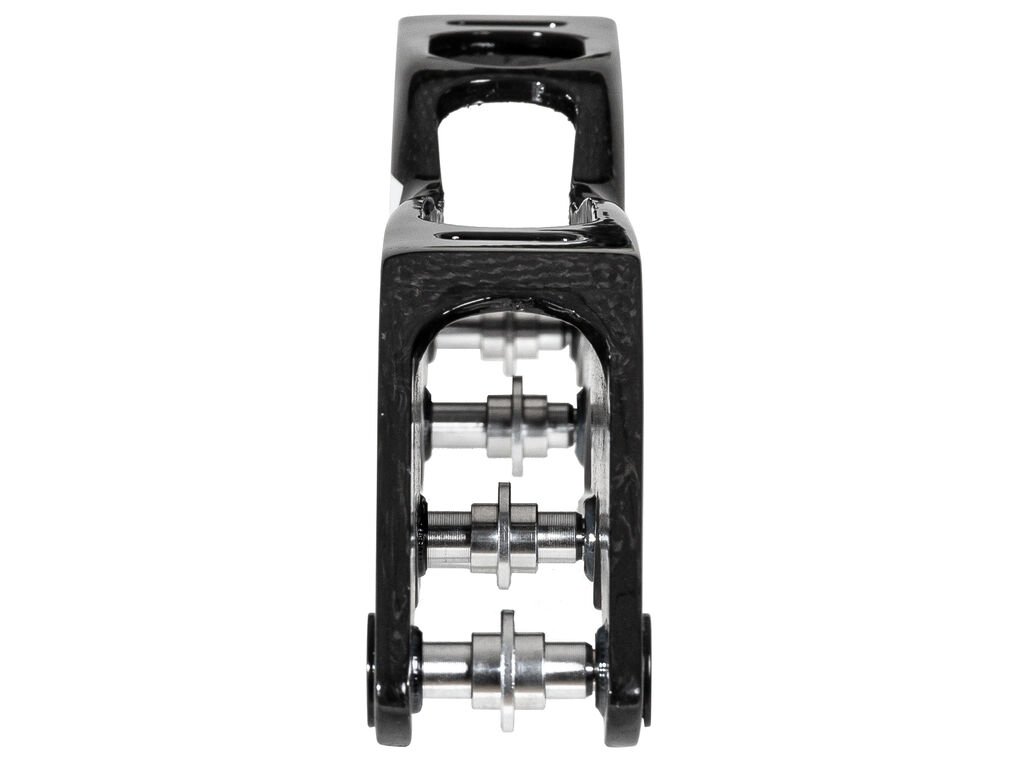 Osy kol z hliníku AL 7075 s Torx T25, které se šroubují přímo do těla rámu zajišťují snadnou údržbu a dlouhou životnost. Rám umožňuje jemné nastavení do stran, což umožňuje doladit jízdní pozici přesně podle stylu bruslaře. Díky karbonové konstrukci a promyšlené geometrii jde o rám, který poskytuje nekompromisní výkon i při maximálním zatížení.