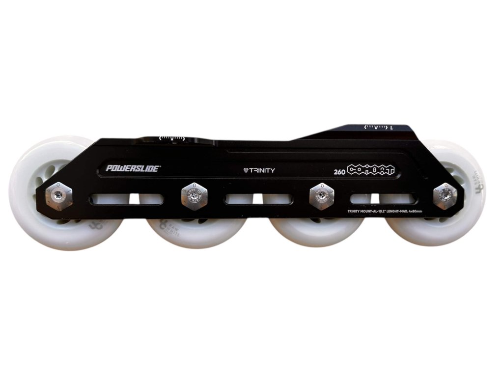 Kompletní podvozky Powerslide Combat Trinity 4x80 jsou ideální volbou pro bruslaře, kteří chtějí mít plnou kontrolu nad jízdními vlastnostmi. Rám o délce 260 mm je vyroben CNC obráběním z jednoho kusu leteckého hliníku (AL 6061), což zajišťuje extrémní pevnost, lehkost a precizní odezvu, které oceníte při rychlé jízdě i při tricích.