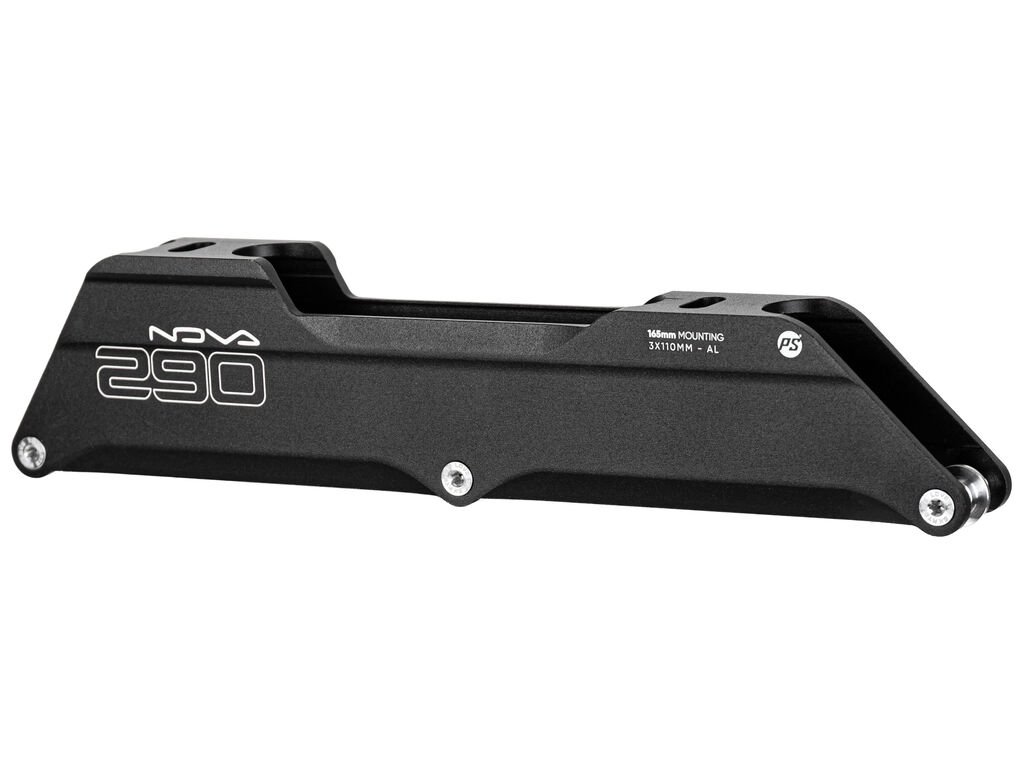 Černý tříkolečkový hliníkový rám (Frame) Powerslide Nova (3x110mm 290mm). Rám je vyráběn na CNC z jednoho kusu hliníku, díky čemuž je nejen lehký, ale také velmi pevný a odolný.