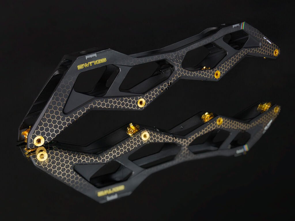 Díky CNC obrábění a extruzi dosahuje rám dokonalé přesnosti a estetiky, kterou podtrhuje laserově tištěný design. Široká plocha uchycení boty zajišťuje efektivní přenos síly, zatímco přímé boční stěny rámu umožňují maximálně účinný odraz. Tento magnéziový rám spojuje nízkou hmotnost, vysokou tuhost a aerodynamický tvar, což ocení každý závodník.