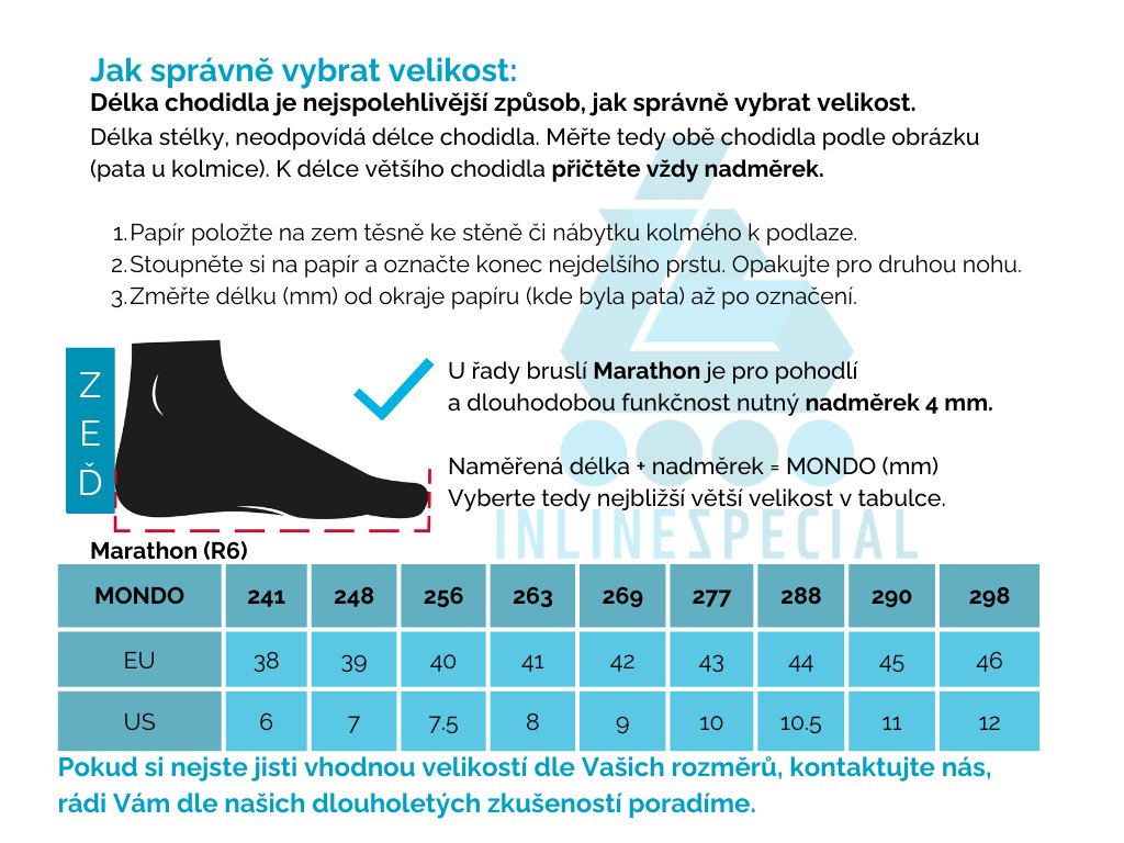 POWERSLIDE R6 Marathon má skelnými vlákny zesílenou skořepinu s integrovanou vložkou, která je lehká, pohodlná a přispívá k výjimečné odezvě brusle. Vaše noha bude pevně zafixována díky systému zapínání, který zahrnuje tradiční šněrování, 45stupňovou ráčnovou přezku a manžetu poskytující boční podporu.