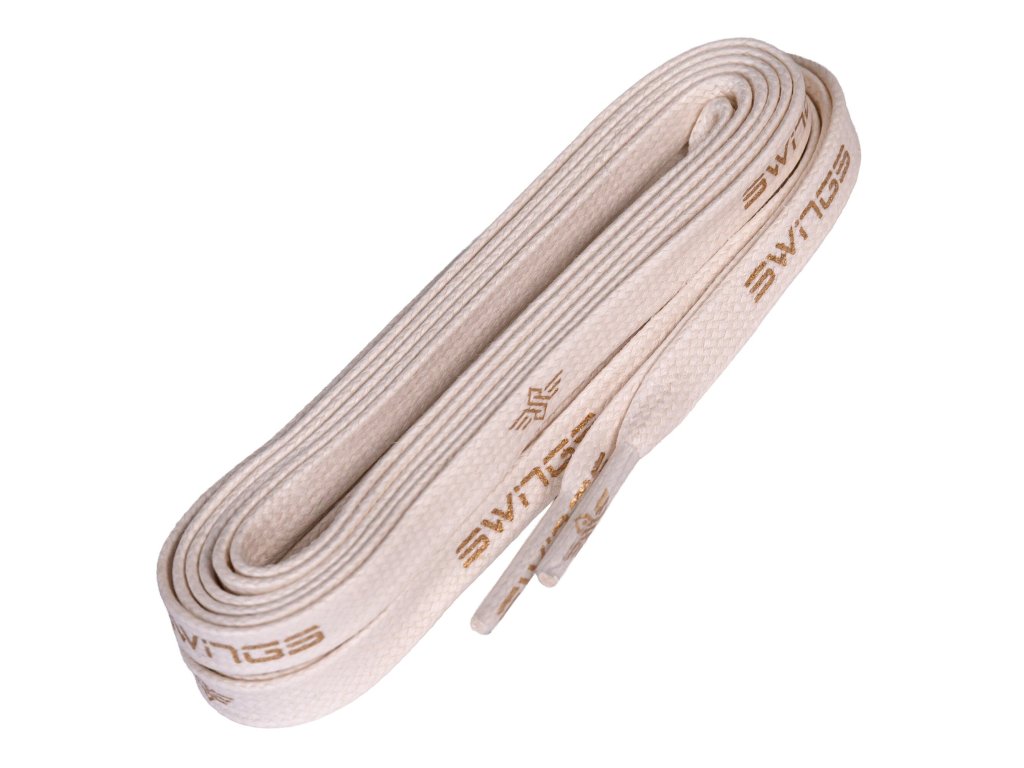 Kvalitní voskované tkaničky Swings Superlaces v bílé barvě. Délka dle výběru: 120, 140, 160 cm. Plochý profil o šířce 8mm. Cena za pár.